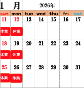 1月の営業日のお知らせ